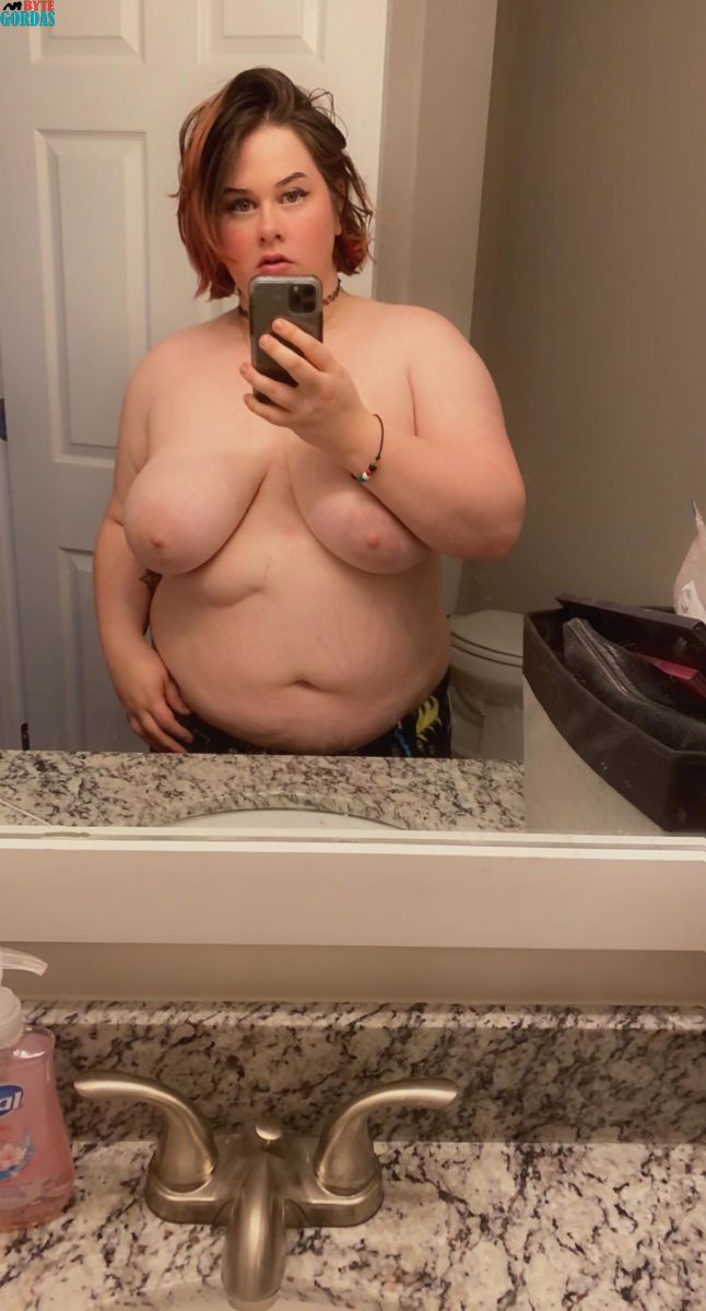 Un día a solas frente al espejo, la blanquita obesa se hace algunos selfies de sus tetas grandes, al ver que se ve muy bien, decide hacer un poco más. Ya en ese punto le agarra el gusto a las fotos amateur y ha entrado en un tobogán sin retorno. Ahora la jovencita es una zorra de internet.